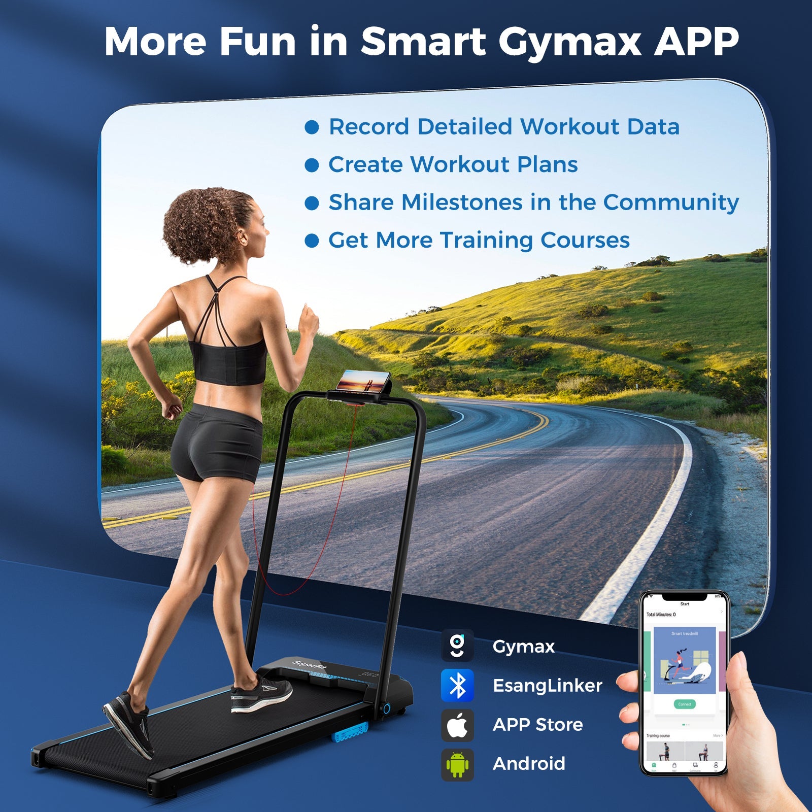 - Connect with Gymax APP: Sync this running machine with the Gymax APP via Bluetooth (EsangLinker) to record detailed workout data, create personalized workout plans, share your milestones with the community and access a wealth of training courses to keep you motivated and on track.