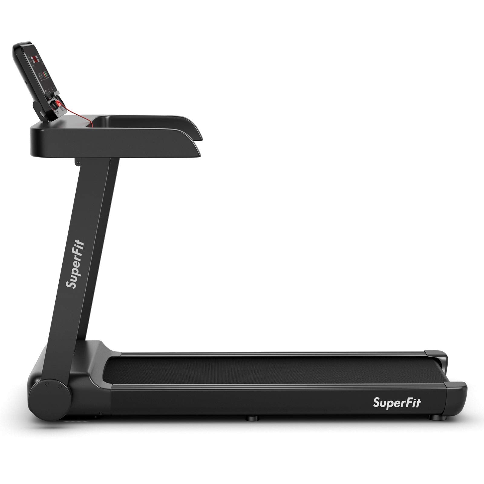 Constructed of premium steel material, the treadmill is sturdy and durable enough for long-term use and can support up to 265lbs. The running belt features anti-skid design effectively to avoid slipping. More importantly, the running belt is designed with a 5-layer structure, and special design effectively absorbs shock and impact while running. Meanwhile, it also reduces noise and provides a quiet running environment for you, perfect for home and office use. To make running more enjoyable, the treadmill is equipped with Bluetooth so that you can connect the treadmill to your phone. What’s more, the LED display clearly shows speed, distance, calories to track your exercise progress in real time.