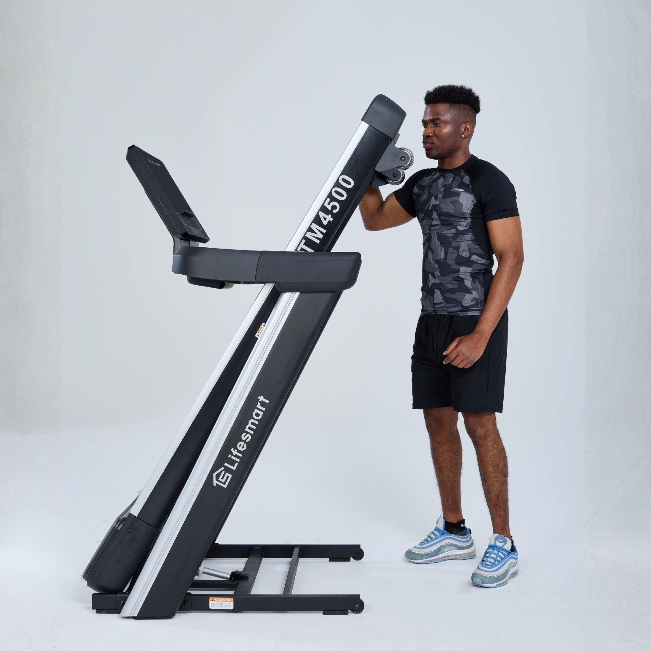 The LifeSmart™ TM4500 PowerTouch Treadmill redefines home fitness with smart innovation and high-performance engineering. Designed for serious runners and everyday users alike, it features the ultra-convenient PowerTouch™ automatic folding system, a rugged new Z-Frame design, and a whisper-quiet 3.5 HP brushless motor that outlasts traditional models by 20X. Whether you’re walking, sprinting, or tackling simulated terrain, the TM4500 delivers a fully immersive, customizable workout experience.