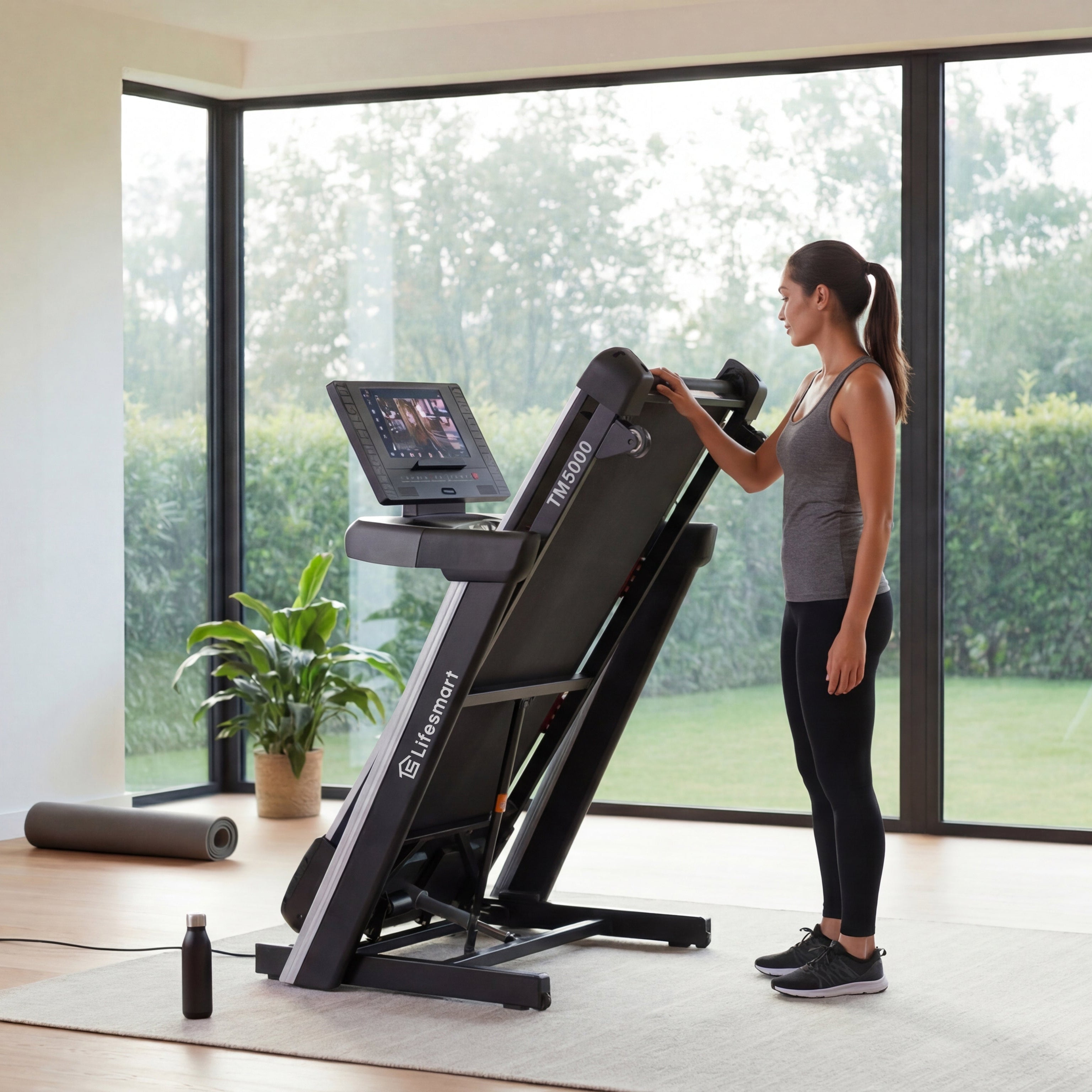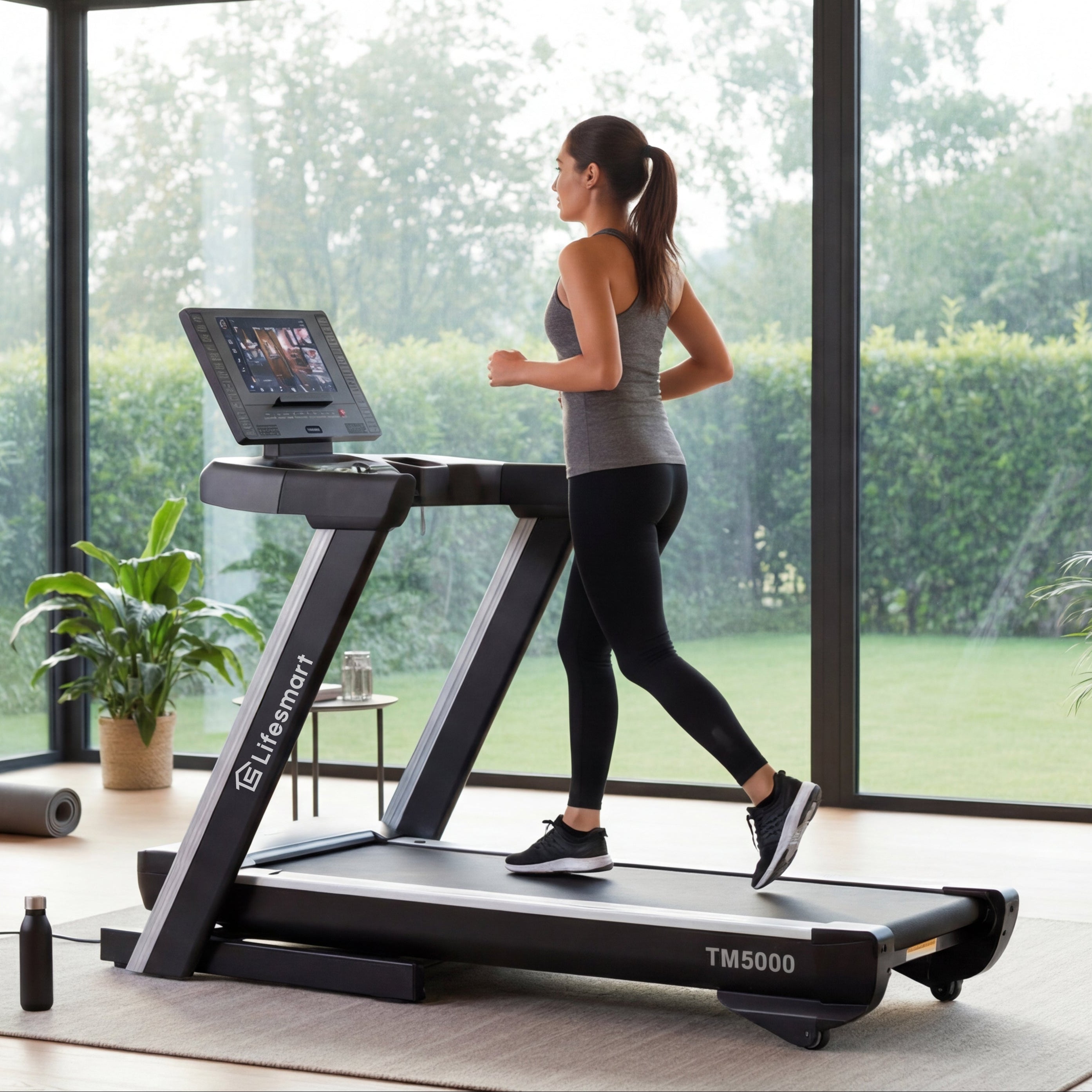 The Lifesmart TM5000 PowerTouch Treadmill combines power, performance, and smart design, featuring a quiet 4.0HP brushless motor and spacious orthopedic belt for a smooth, comfortable run. With PowerTouch one-touch folding, a vivid 16” TFT display, Bluetooth connectivity, and incline/decline control, it offers a premium, connected workout experience right at home.