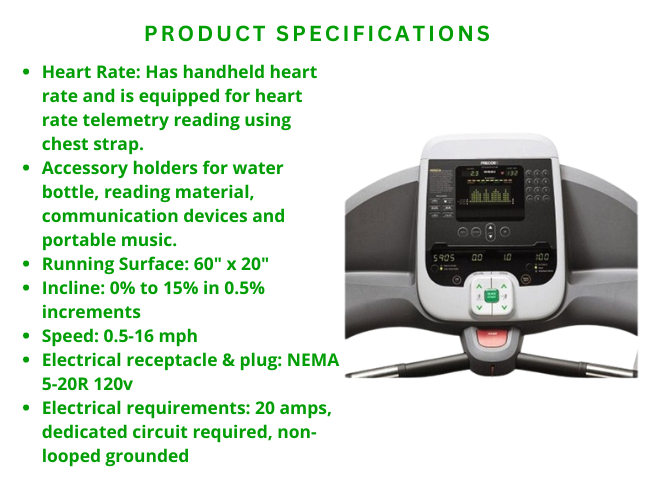 Stay on top of your fitness progress with comprehensive readouts such as Percent Complete, Average Heart Rate, Calories Burned, and more. The treadmill is equipped with both handheld heart rate sensors and telemetry reading capability using a chest strap, ensuring optimal heart rate monitoring. Its spacious 60″ x 20″ running surface and variable incline range from 0% to 15%, combined with speeds up to 16 mph, provide a versatile workout experience, whether walking, jogging, or running.